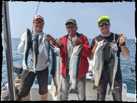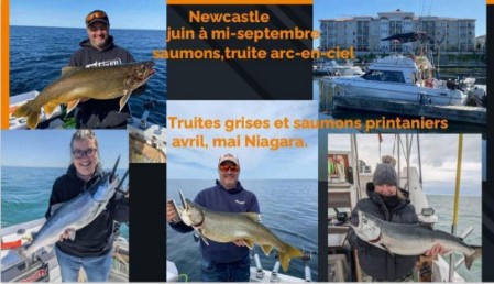 Guide de Pêche Steve Beaulieu au lac ontario à la marina de Newcastle , pour le saumon chinook, truite arc-en-ciel de juin à mi septembre.
