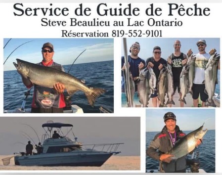 Steve Beaulieu guide de pêche , vous guide au lac Ontario pour pêcher le saumon à bord d’un bateau 30 pieds , deux étages et une salle de bain complète.